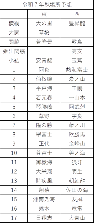 第79号 秋場所予想番付と琴風の解説(2025.7.28)